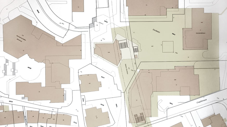 Ziel ist ein detailliertes Entwicklungskonzept, das unter Berücksichtigung der wirtschaftlichen Realitäten eine verdichtete Neugestaltung des Dorfzentrums erlaubt.