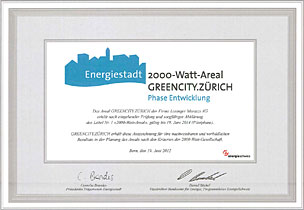Greencity erhält schweizweit erstes Energiestadt-Zertifikat