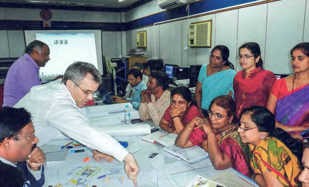 Building Energy Efficiancy Project (BEEP) bringt nachhaltige Bauweisen nach Indien. Der Schweizer Experte Andreas Binkert arbeitet zusammen mit lokalen Fachleuten um low-tech Massnahmen umzusetzen.