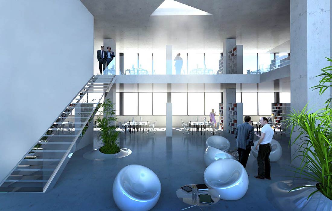 The bonded warehouse known as “Transitlager”, located in Basel’s Dreispitz industrial district, is a unique warehouse building and was one of the first buildings in the area to be transformed into a mixed-use building. The residential component covers 55% of the usable area, the remaining was transformed into offices, artist studios, showrooms, as well as a bar, café and restaurant. The proposal from the Danish architectural firm BIG (Bjarke Ingels Group) emerged as the winner of the architectural competition in 2012. The existing four story, reinforced concrete structure was extended with a lightweight three story construction, containing apartments. The addition enhanced the original structure, creating a striking urban zigzag form. The second and third stories of the existing building contain now loft living and studios. You find flexible office and trade uses on the first story, commercial uses and gastronomy on the ground floor. The ground level usages faces the “Kunstfreilager Plaza”.