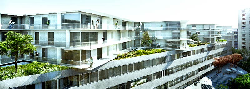 L’ancien entrepôt sera l’un des premiers bâtiments du triangle dans lequel des appartements verront le jour. Le projet du bureau d’architectes BIG (Bjarke Ingels Group) est sorti vainqueur d’un concours. La structure de quatre étages existante sera surélevée par une construction légère de trois étages, qui abritera exclusivement des appartements. La surélévation se présente sous une forme en zigzag avec un urbanisme marqué. Des surfaces d’habitat et d’ateliers modernes sont principalement prévus pour le second et troisième étage de la construction existante, au premier étage des secteurs de bureau et de prestations de service flexibles et au rez-de-chaussée des commerces et des restaurants.