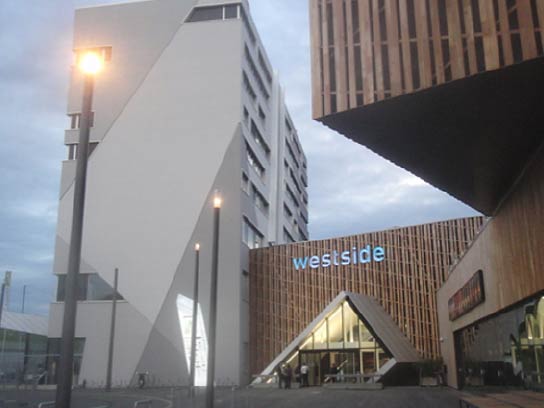 WESTside项目可以称为是一个“体验的世界“- Daniel Libeskind设计的壮观建筑成为了伯尔尼西边的新地标以及城市开发样板。它对于商品与服务的独特创意性结合也为之后的项目设下新标准。